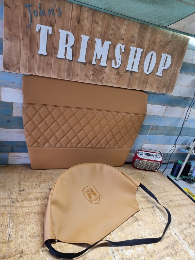 Custom made bonnet compartment / trunk liner kits, VW Karmann ghia & Beetle (68 on) versions shown below. Can be made in any material and style to compliment your car with or without embroidery.